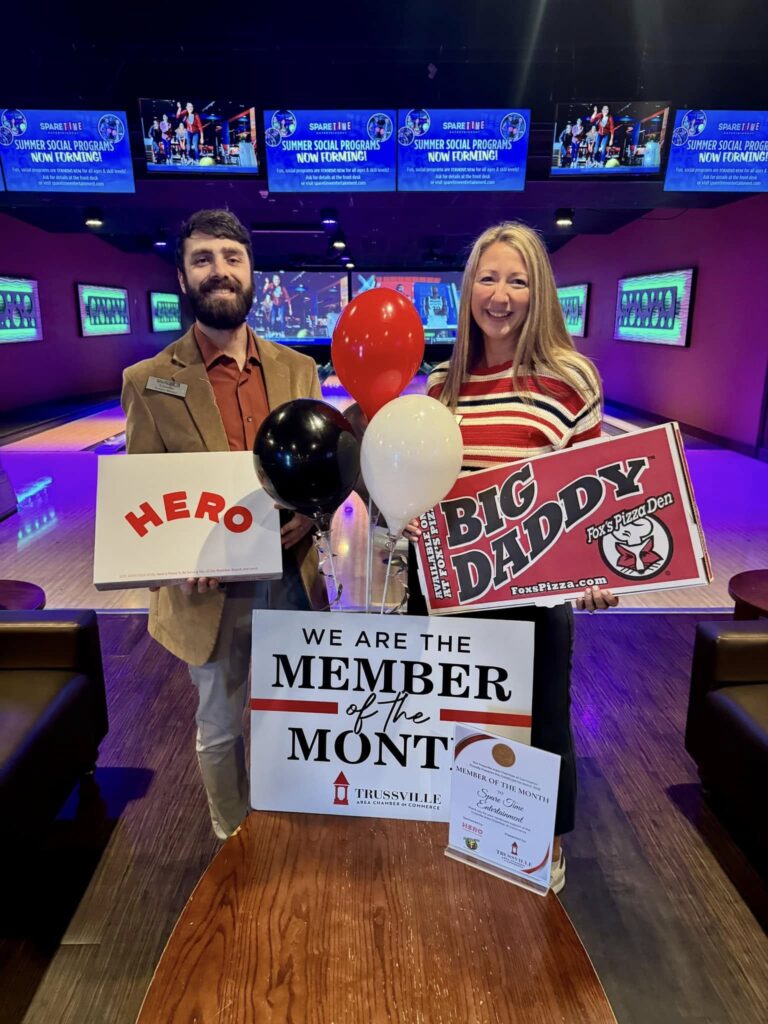 Spare Time Entertainment has been named the Trussville Area Chamber of Commerce Member of the Month for March in recognition of their continued support, community involvement, and commitment to providing a fun and welcoming space for families and businesses alike. Featuring bowling, arcade games, laser tag, and event spaces, Spare Time has become a go-to destination in Trussville for entertainment, group outings, and community gatherings.