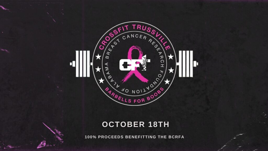 On Saturday, October 18, 2025, CrossFit Trussville hosts the 15th Annual Barbells for Boobs Fundraiser in support of the Breast Cancer Research Foundation of Alabama (BCRFA). 100% of proceeds go directly to fund research at institutes across our state. The BCRFA exists to support patients and survivors in Alabama and continues to operate with this mission at the center.